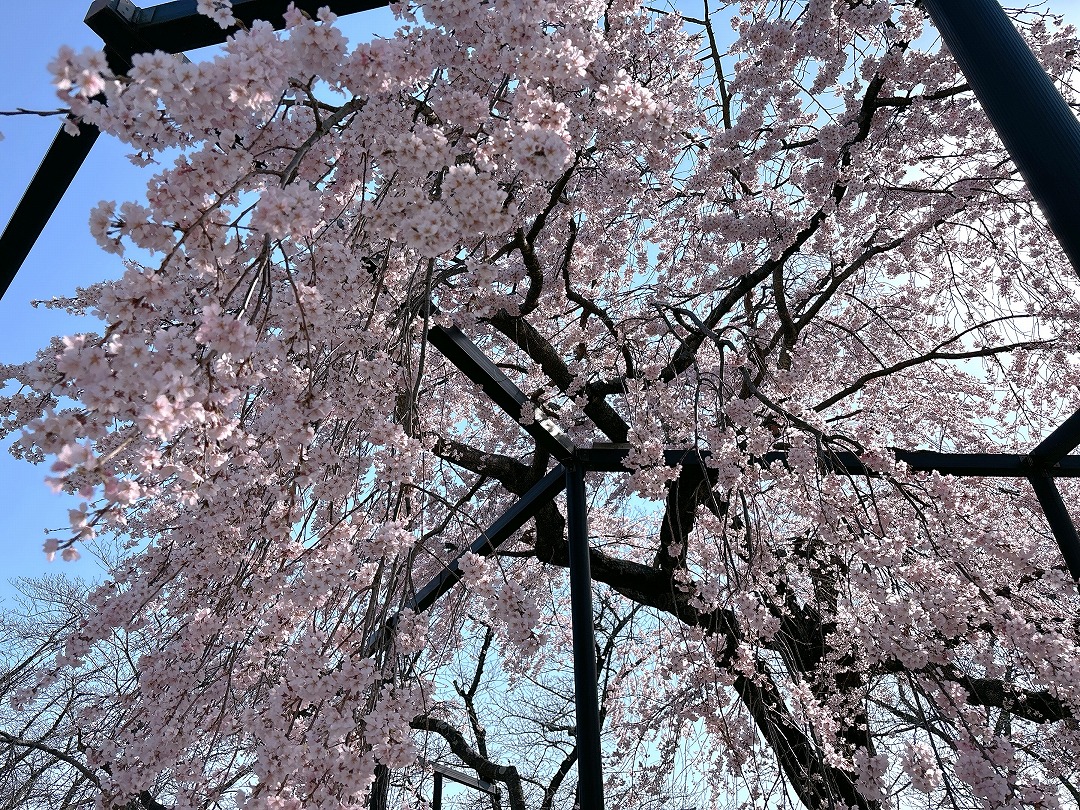 前面以外はかなり剪定されてしまっていますが、これもこのしだれ桜ならではの個性と思えば愛おしくなりますね。