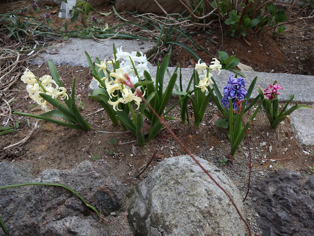 庭園の小道沿いに植えられた水仙やヒヤシンスも花ざかり。