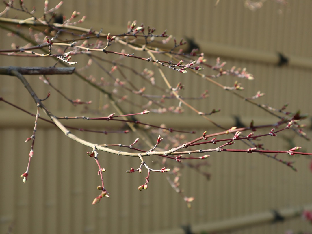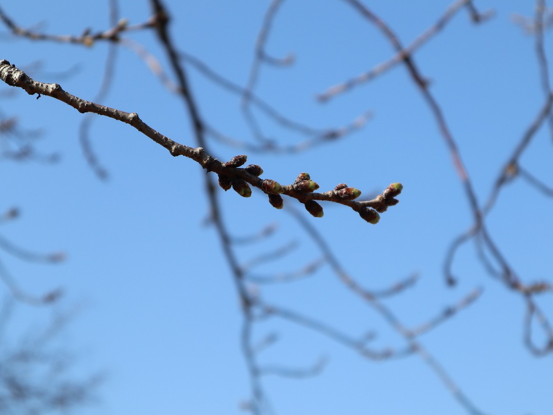 ソメイヨシノのつぼみはまだ固く。