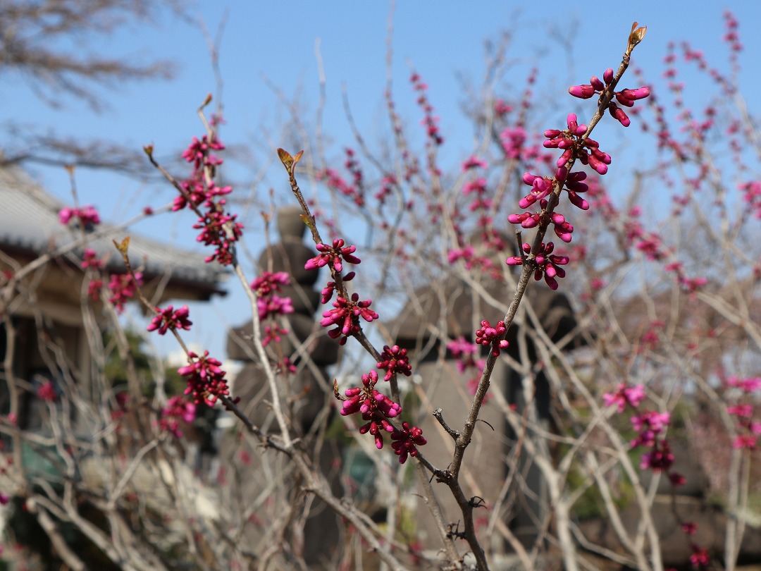 紅枝垂桜の近くで見つけたハナズオウのつぼみ。