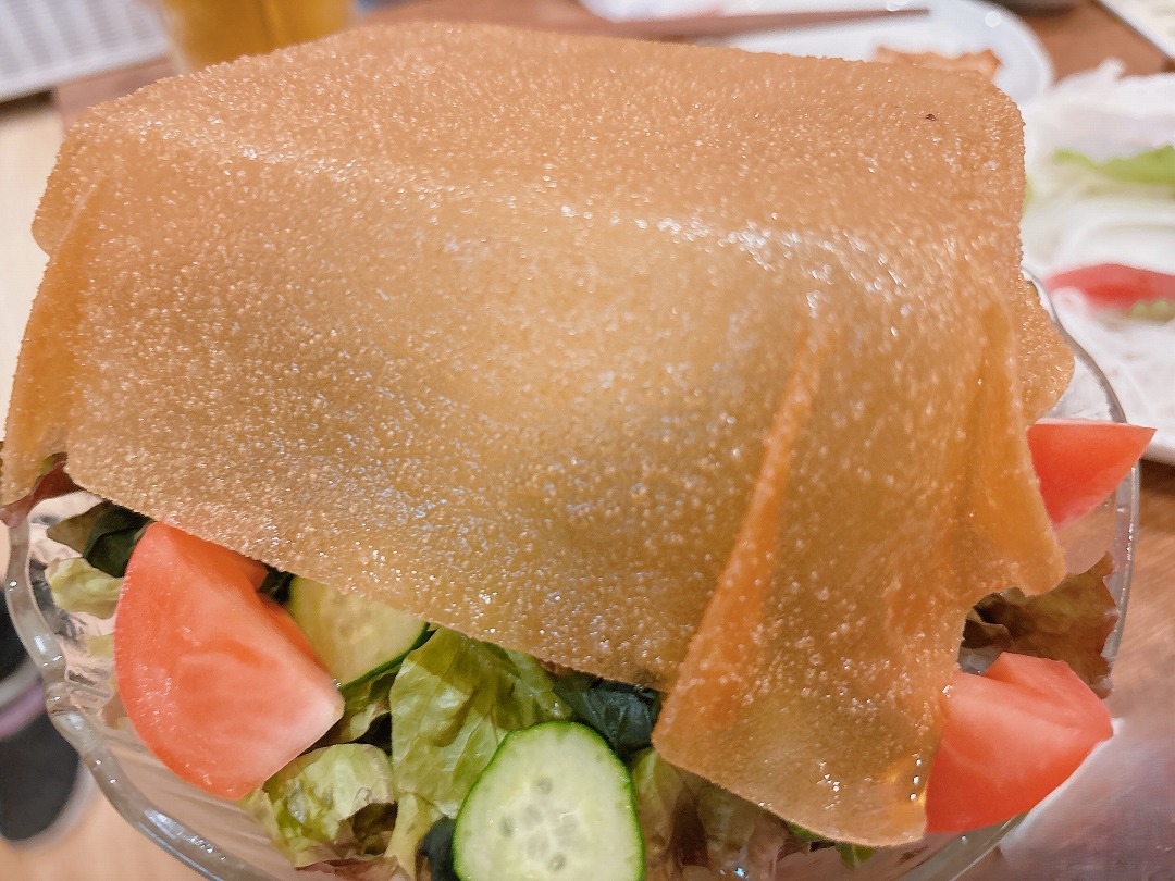 野菜の上に載っているのは、こたつに見立てたワンタンの皮?
