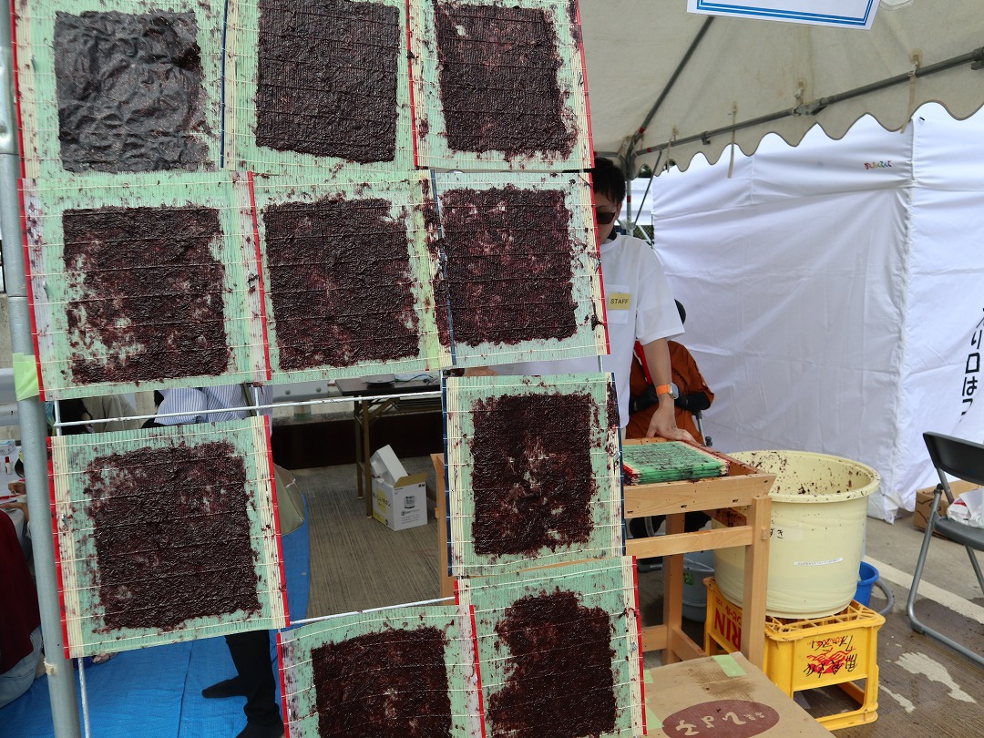 漉いた海苔は天日干しでパリパリに仕上げます。