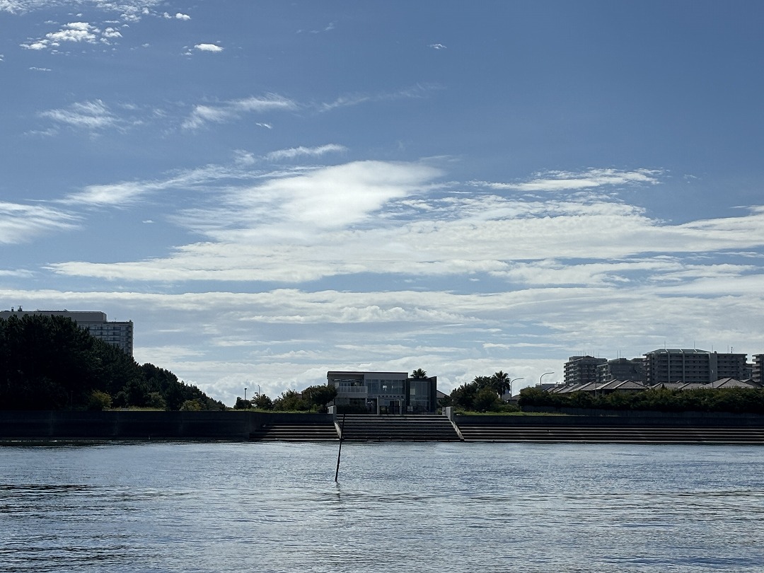 海上から戸建住宅地を眺めるのはちょっと不思議な気分。