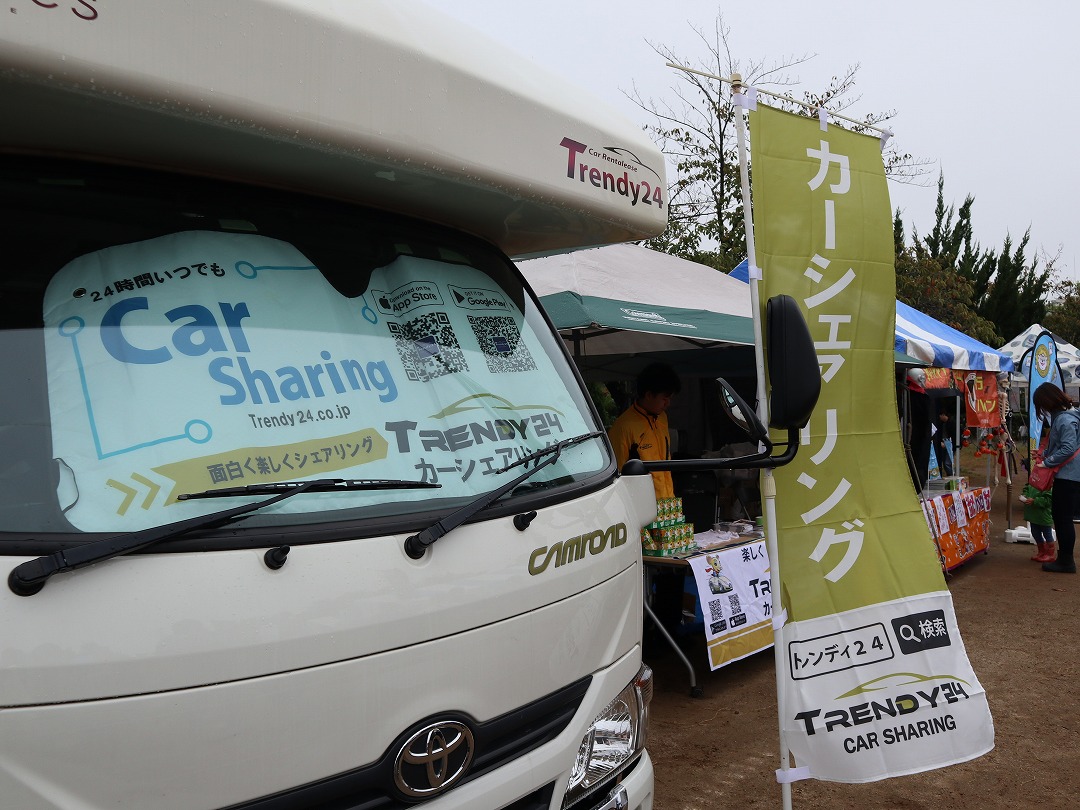 出店者の中にはキャンピングカーのカーシェアリングを行う業者も。