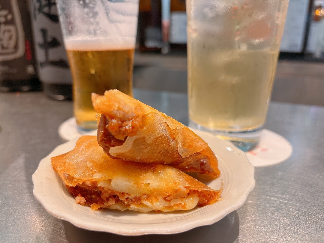 パリっと食感がお酒にぴったりなポテトミート春巻。