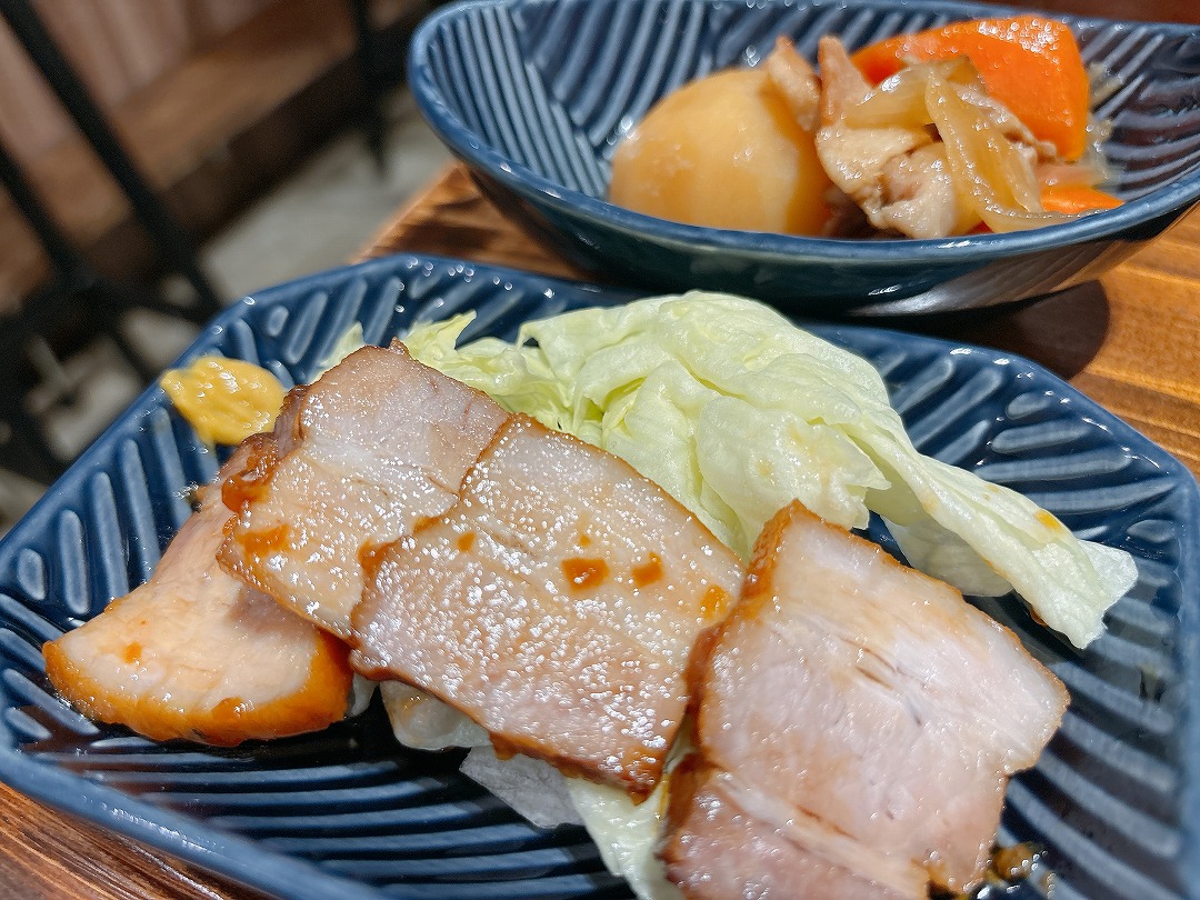 チャーシューと肉じゃがでバルメニューおつまみコンプリートです。