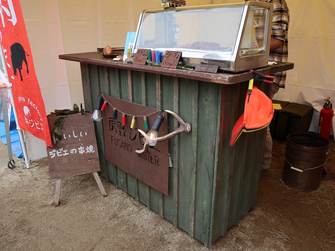 ここでは珍しいキョン肉の串焼きが食べられます。