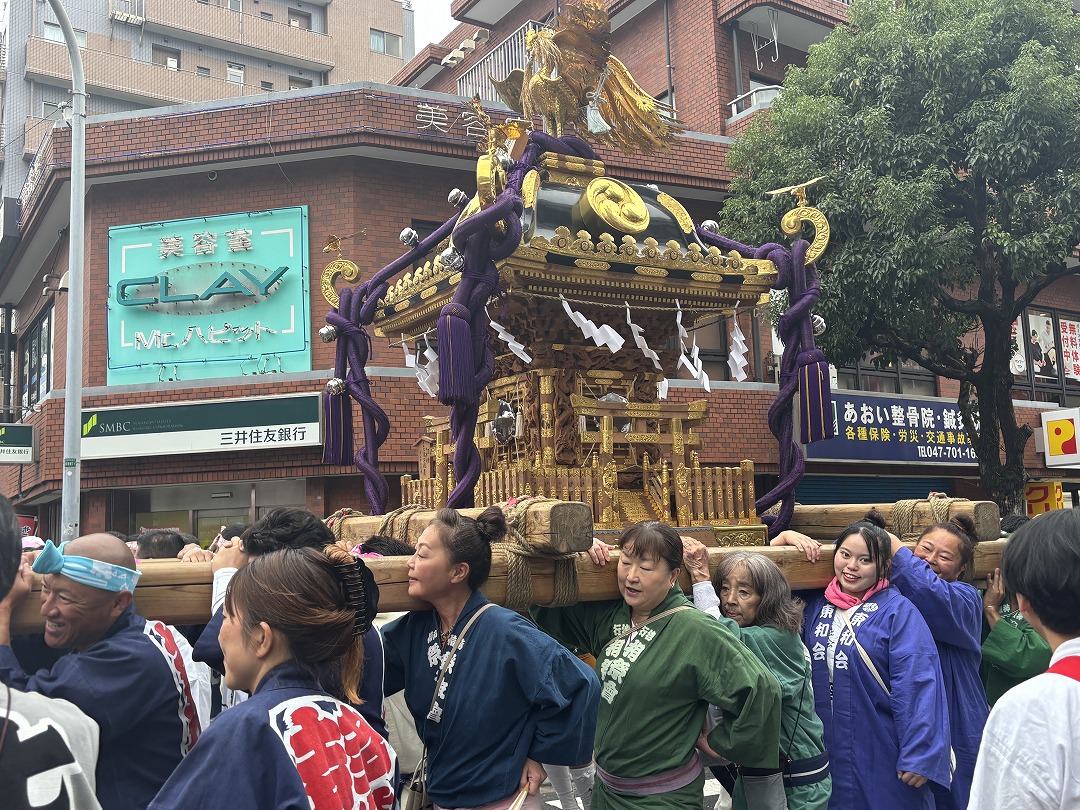 行徳ハロウィンの仮装パレード途中で切り上げ南行徳へ移動すると、江戸前神輿が南行徳保健センター前を進んでいるところでした。