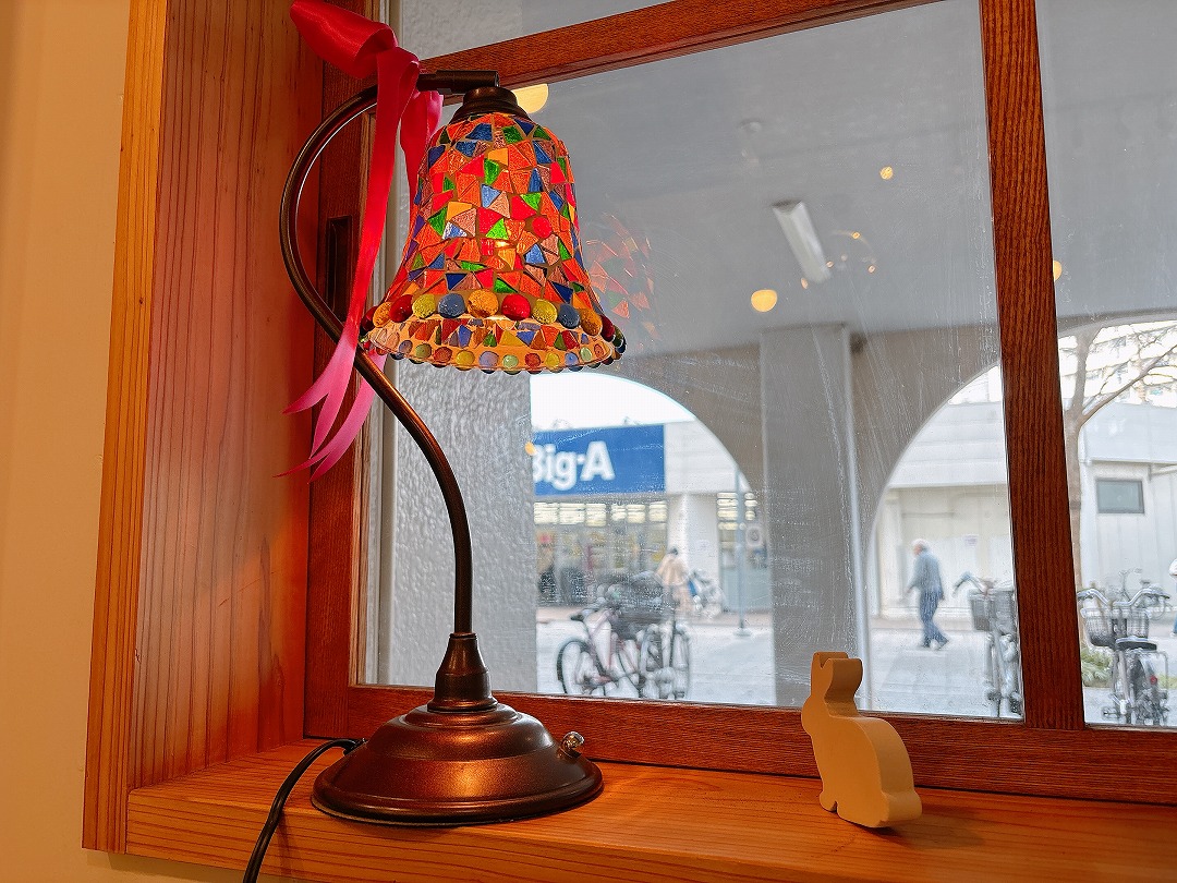窓際のおひとり様席に座ったら、雰囲気良くなるからとお店の方がランプを点灯してくださいました。