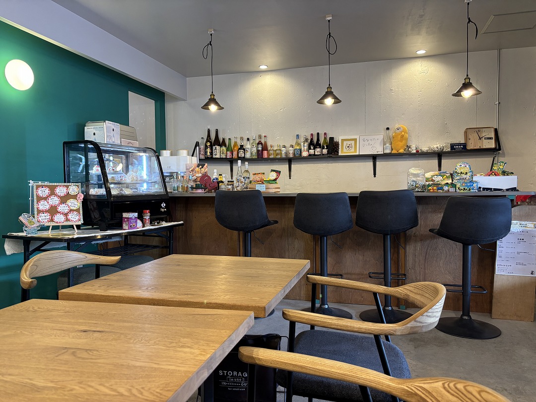 店内入ってすぐの右手にあるカウンタースペースには駄菓子やお酒が並び、幅広い世代の人々が集まる場所だと想像できます。