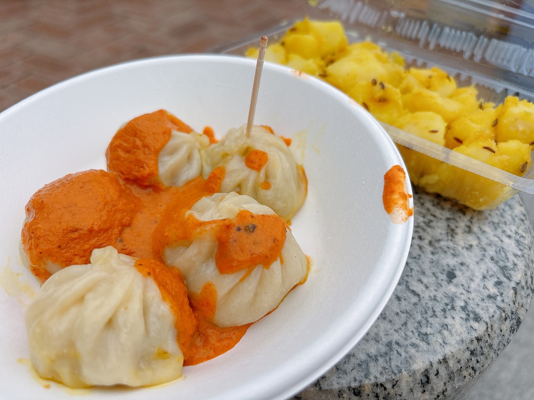 妙典2丁目にあるインド料理店doorのモモ(ネパール風の小籠包的なもの)とスパイシーポテトで心とお腹を満たします。